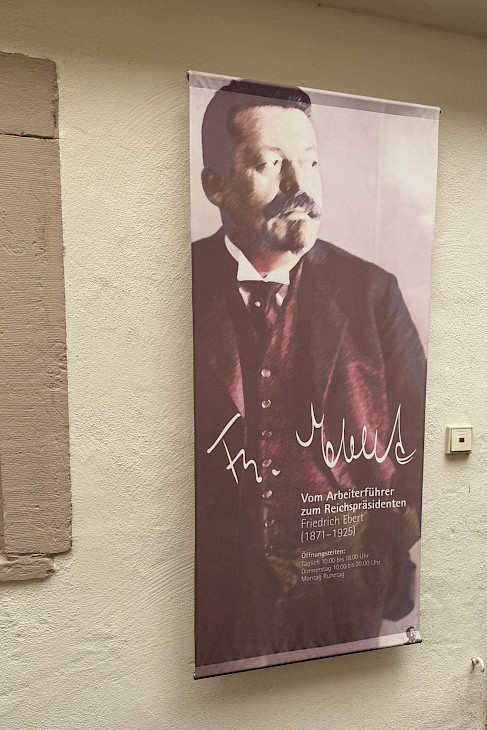 Aufgrund der Anzahl der Teilnehmenden erfolgten die Führungen in der Friedrich-Ebert-Gedenkstätte in zwei Gruppen; zum einen durch die Dauerausstellung, die Herkunft, Leben und politisches Wirken Friedrich Eberts beleuchtete. Zum anderen wurde in der Führung durch die Sonderausstellung zum 100. Todestag Friedrich Eberts „Friedrich Eberts Erbe – eine Demokratie mit Perspektiven“ die historische Entwicklung der Weimarer Republik, von deren Entstehung und ihren Perspektiven bis zu deren Scheitern, thematisiert.